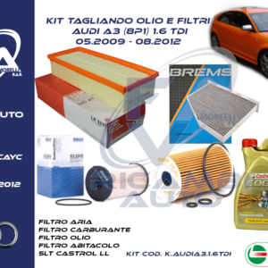 KIT TAGLIANDO FILTRI E OLIO CASTROL 5W30 AUDI A3 (8P1) 1.6 TDI 05.2009 – 08.2012